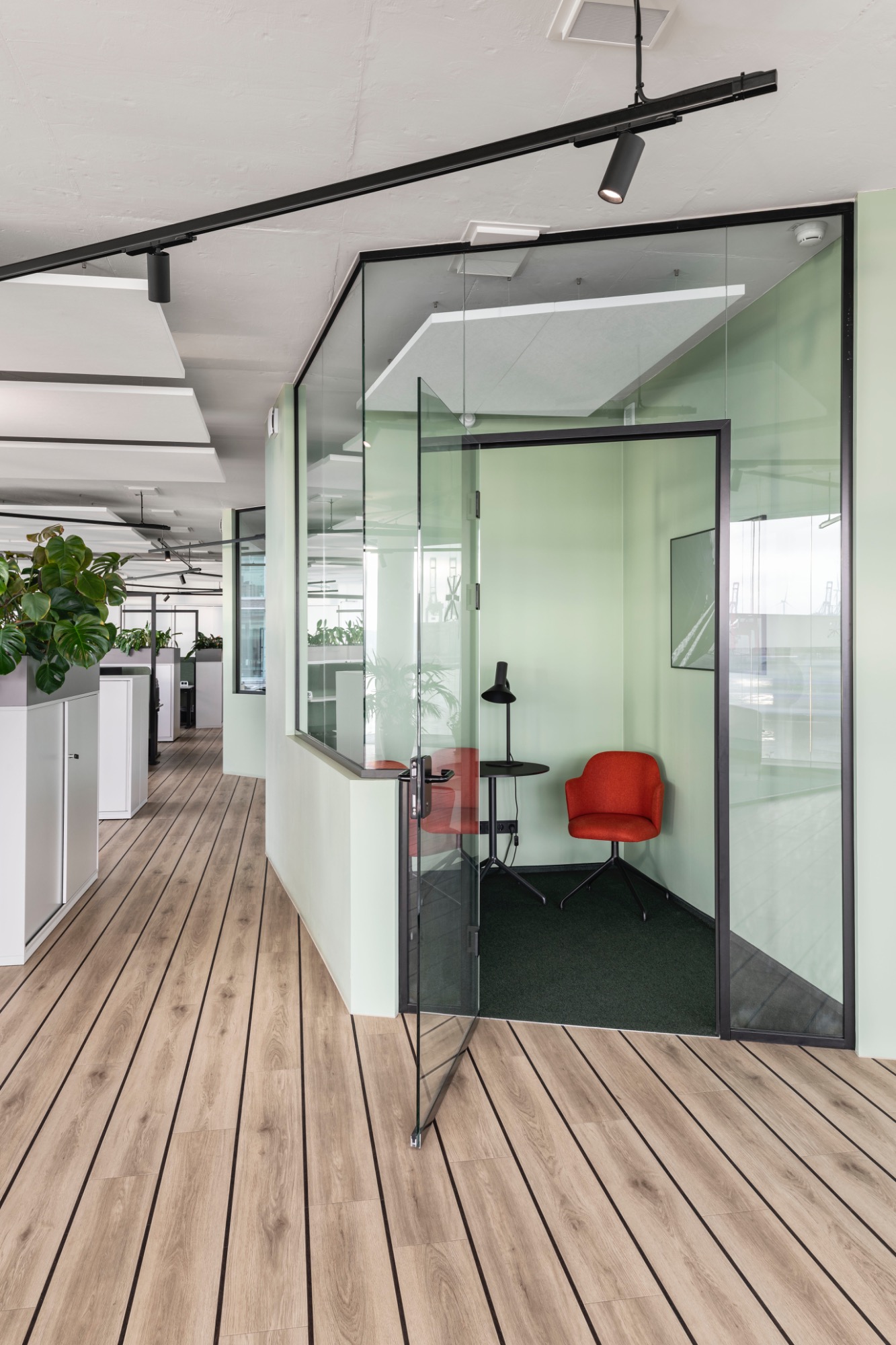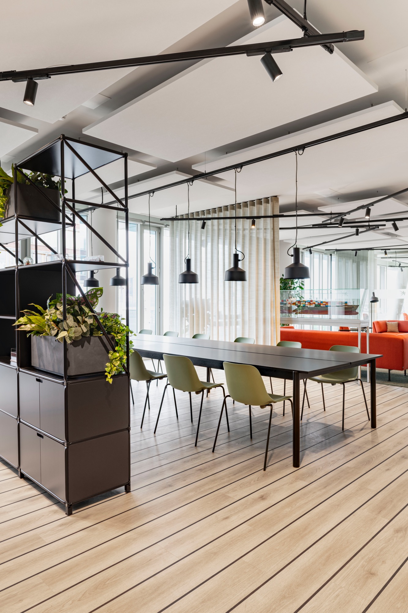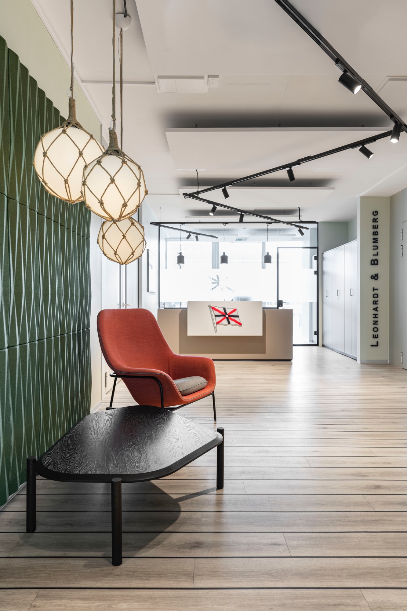 Das Projekt „Leonhardt & Blumberg“ versteht Büroarchitektur als Spiegel der Unternehmens-DNA. Ziel war es, eine Arbeitswelt zu schaffen, die nicht nur funktional ist, sondern die Werte, Expertise und den starken Zusammenhalt der Mitarbeiter sichtbar macht. Ausgangspunkt der Planung war eine detaillierte Analyse der bestehenden Arbeitsweise: Während Teamgeist und sozialer Austausch bereits gut funktionierten, wurden Komfort, Produktivität und Abwechslung im Arbeitsalltag nur als befriedigend wahrgenommen. LOTOS entwickelte daraufhin ein Konzept, das den Arbeitsplatz zu einem Ort der Begegnung, Inspiration und Flexibilität transformiert.