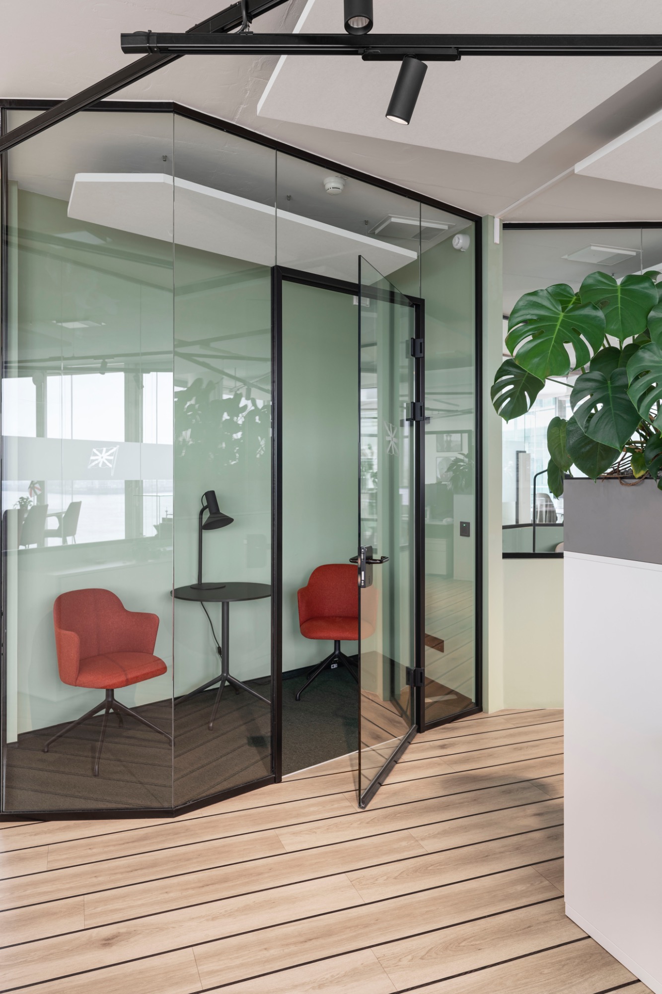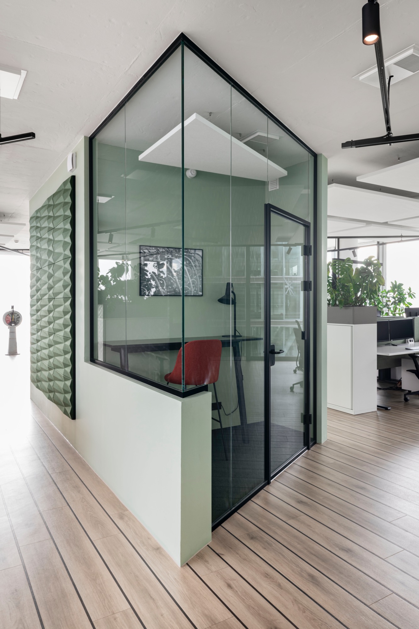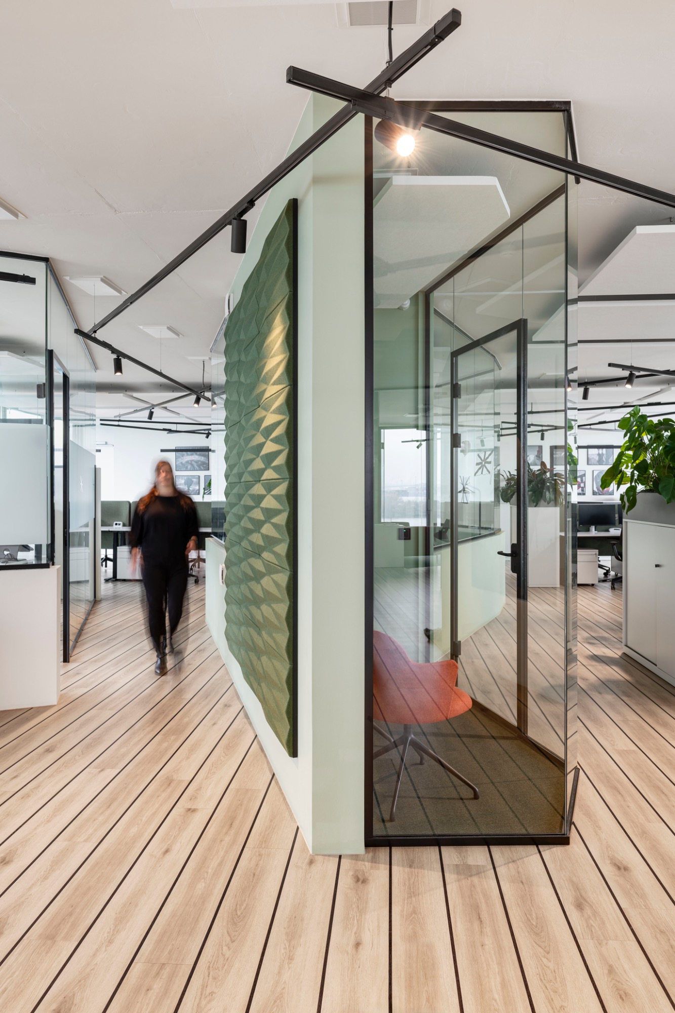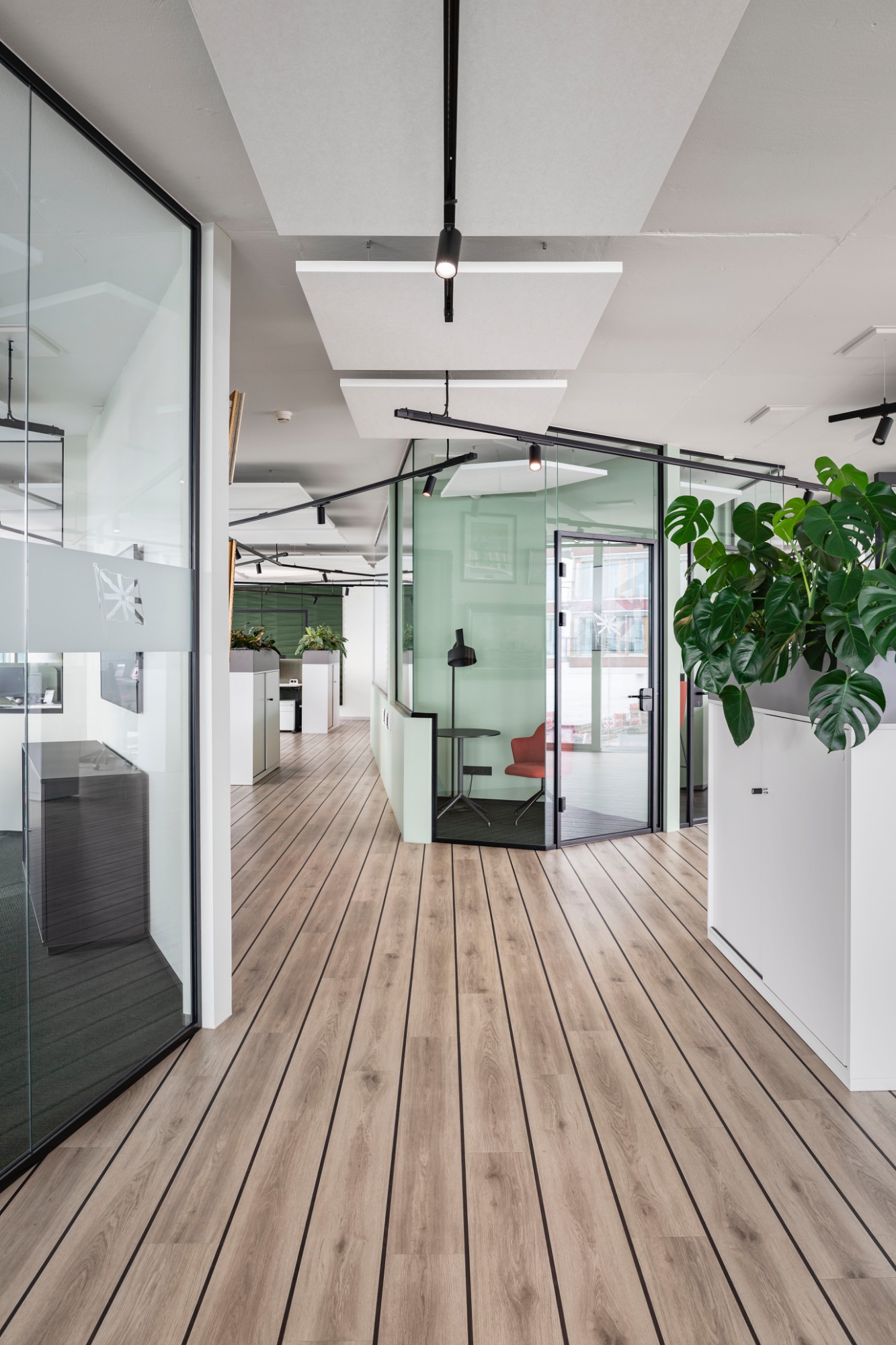Das Projekt „Leonhardt & Blumberg“ versteht Büroarchitektur als Spiegel der Unternehmens-DNA. Ziel war es, eine Arbeitswelt zu schaffen, die nicht nur funktional ist, sondern die Werte, Expertise und den starken Zusammenhalt der Mitarbeiter sichtbar macht. Ausgangspunkt der Planung war eine detaillierte Analyse der bestehenden Arbeitsweise: Während Teamgeist und sozialer Austausch bereits gut funktionierten, wurden Komfort, Produktivität und Abwechslung im Arbeitsalltag nur als befriedigend wahrgenommen. LOTOS entwickelte daraufhin ein Konzept, das den Arbeitsplatz zu einem Ort der Begegnung, Inspiration und Flexibilität transformiert.