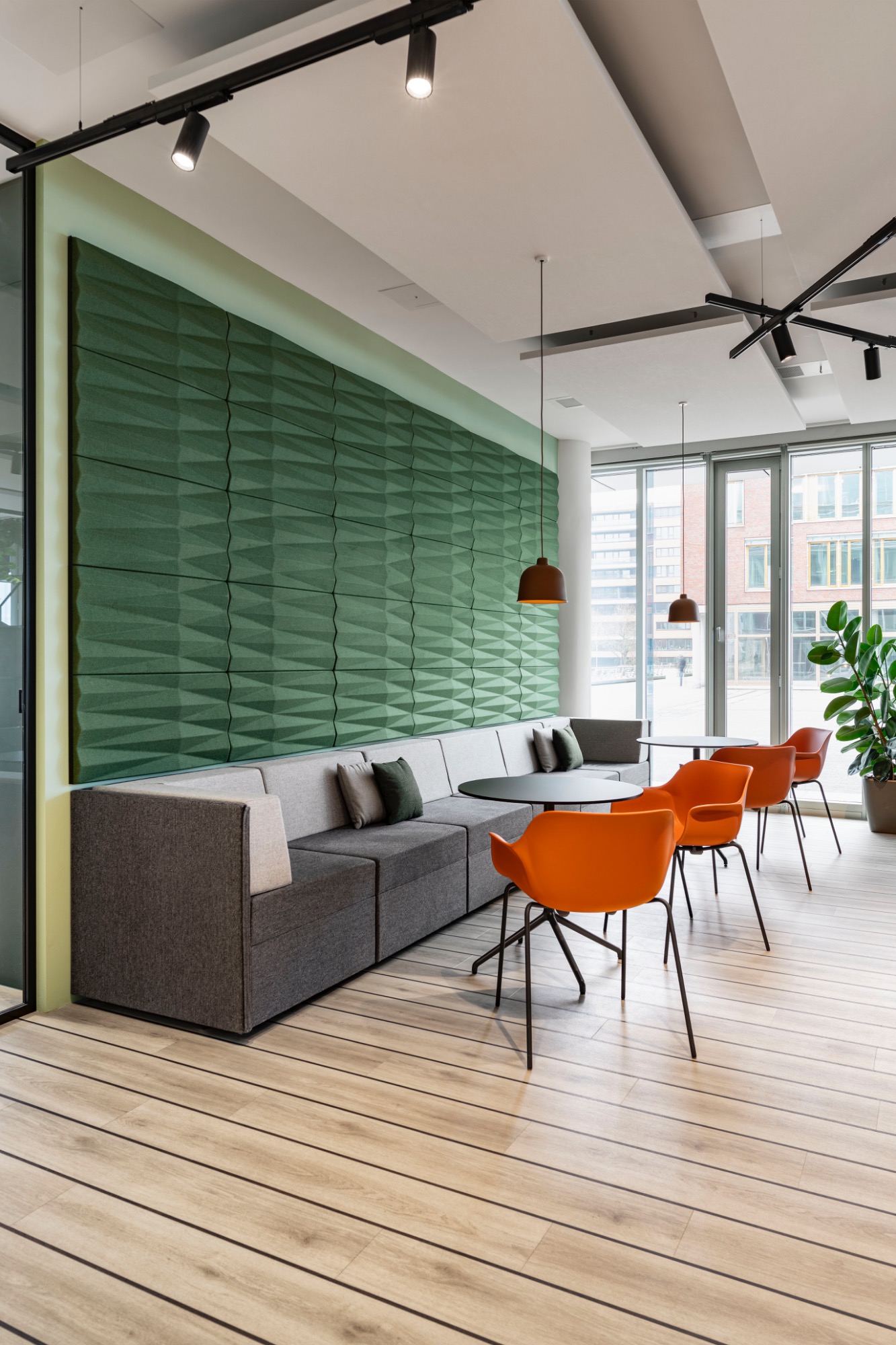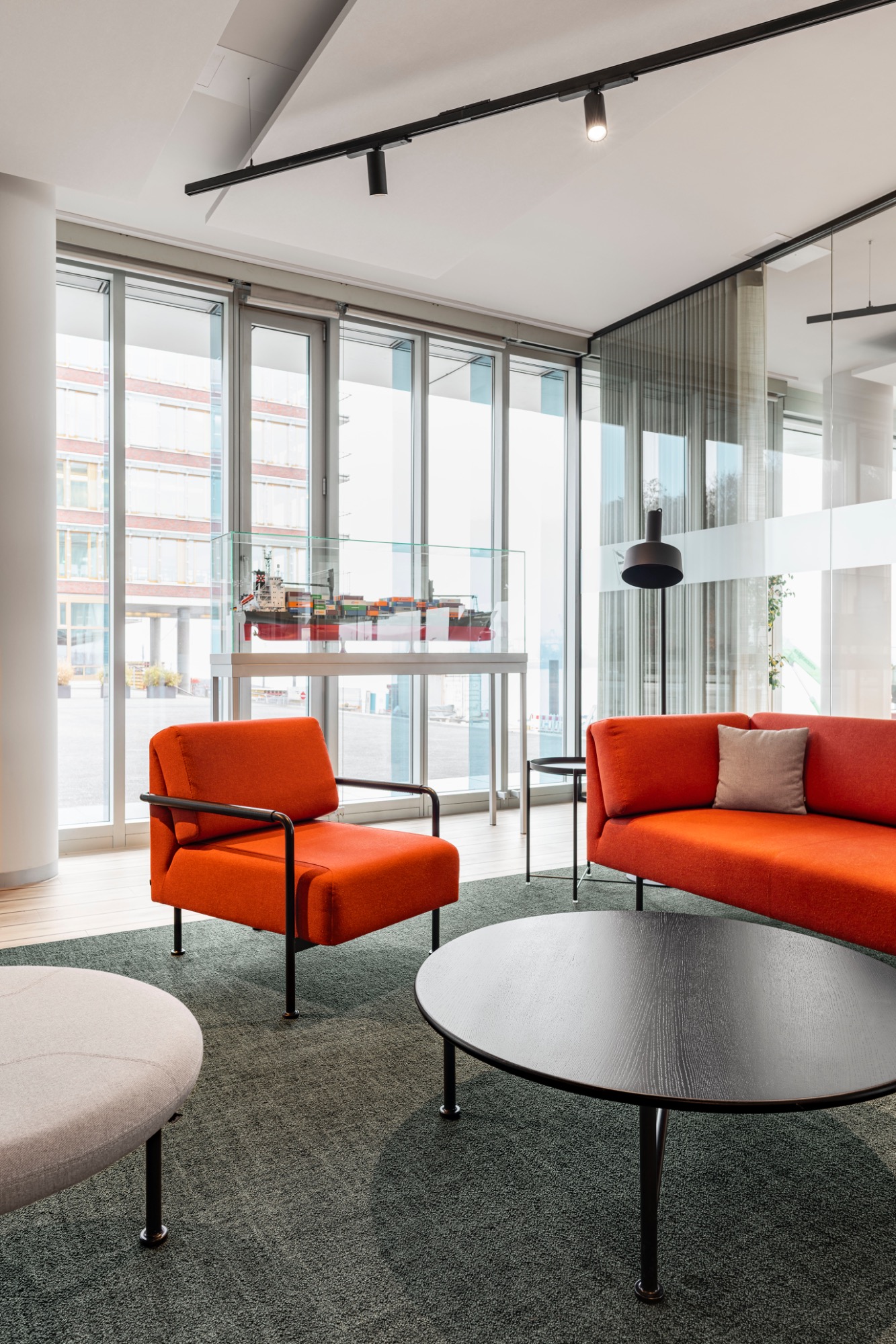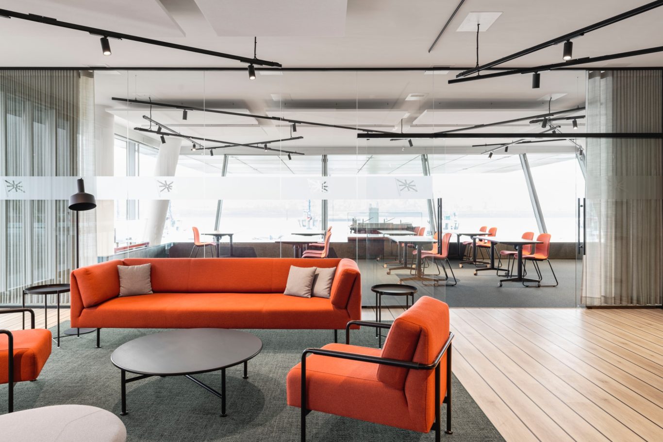 Zentrale Leitidee des Entwurfs ist das Motto „Kehr wieder!“. Dieser historische Hamburger Ausruf symbolisiert die Rückkehr an einen vertrauten Ort, an dem Begegnung, Austausch und gemeinsames Arbeiten selbstverständlich sind. Dafür wurden zonierte Arbeitswelten geschaffen: offene Arbeitsinseln, flexible Breakout-Räume, individuelle Rückzugsbereiche sowie multifunktionale Gemeinschaftsflächen wie die „Know-How-Börse“ und das „gemeinsame Wohnzimmer“. So entsteht eine Bürostruktur, die sowohl fokussiertes Arbeiten als auch spontane Interaktion ermöglicht – und den Erfahrungsschatz der Mitarbeiter aktiv nutzbar macht.